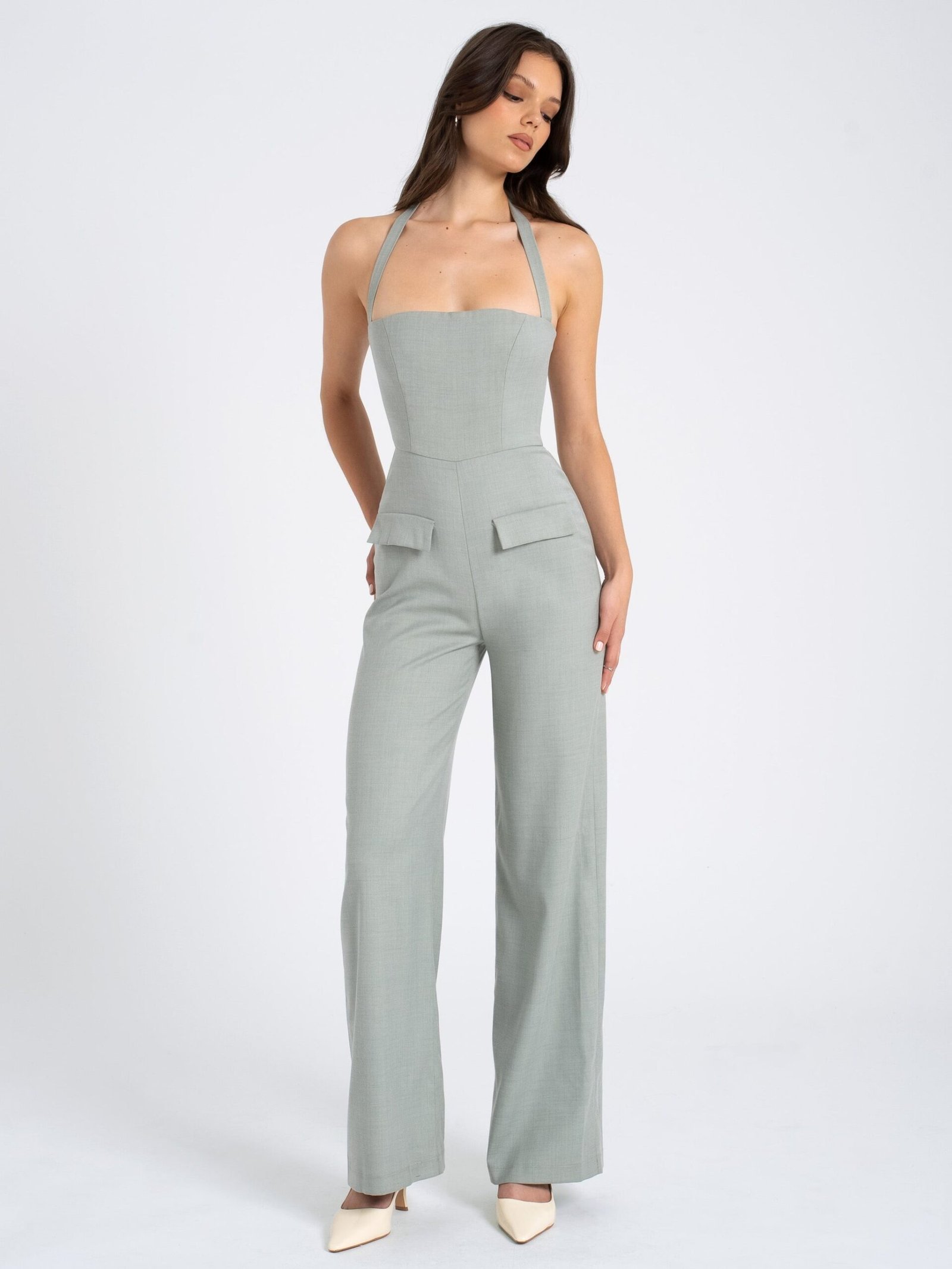- “Zaria Sage Green Wide Leg Halter Jumpsuit”